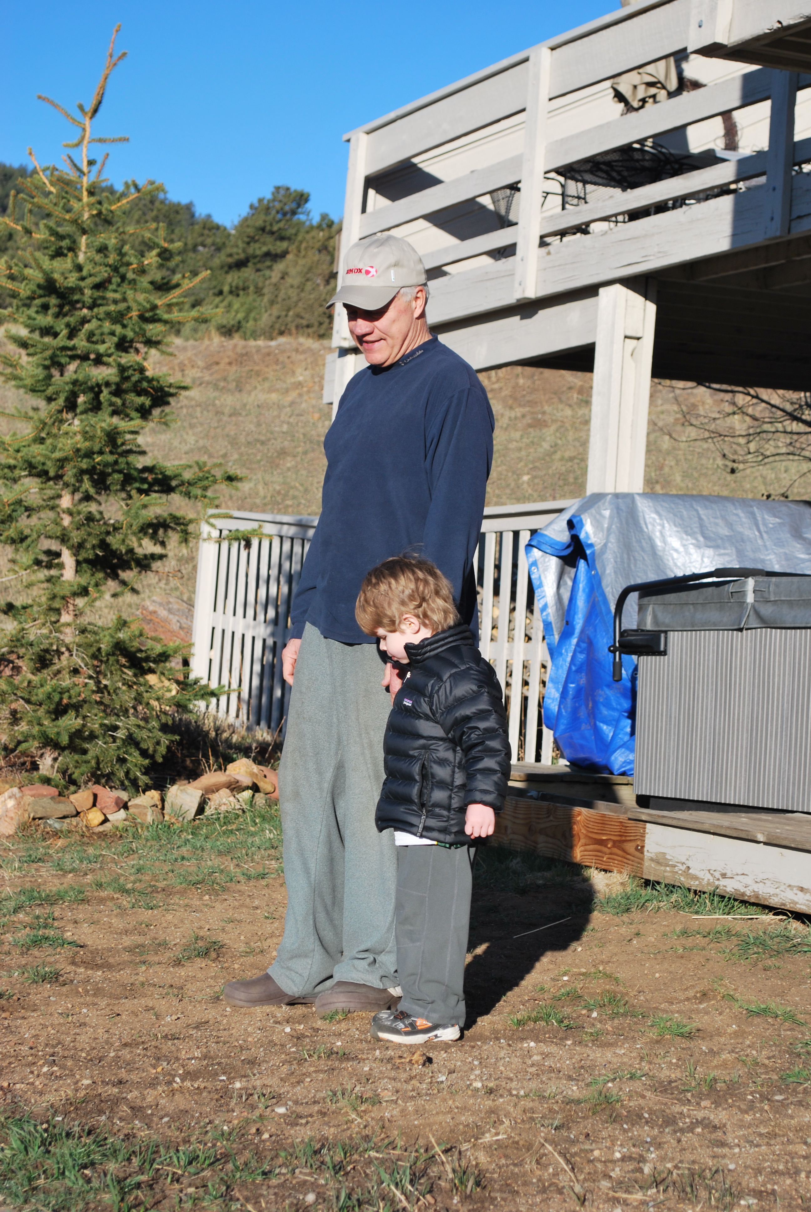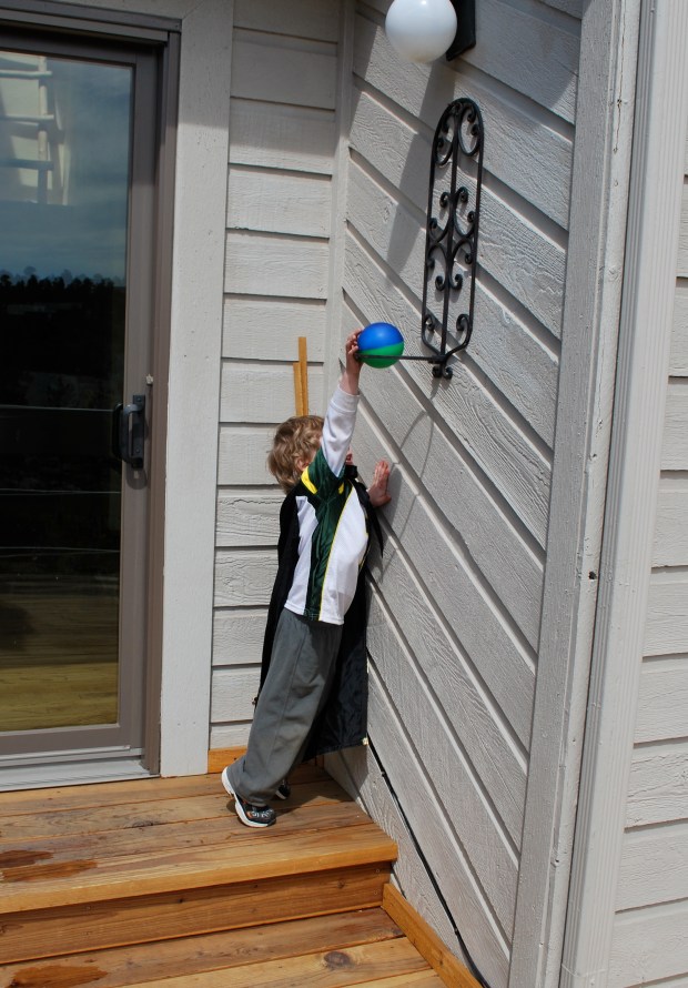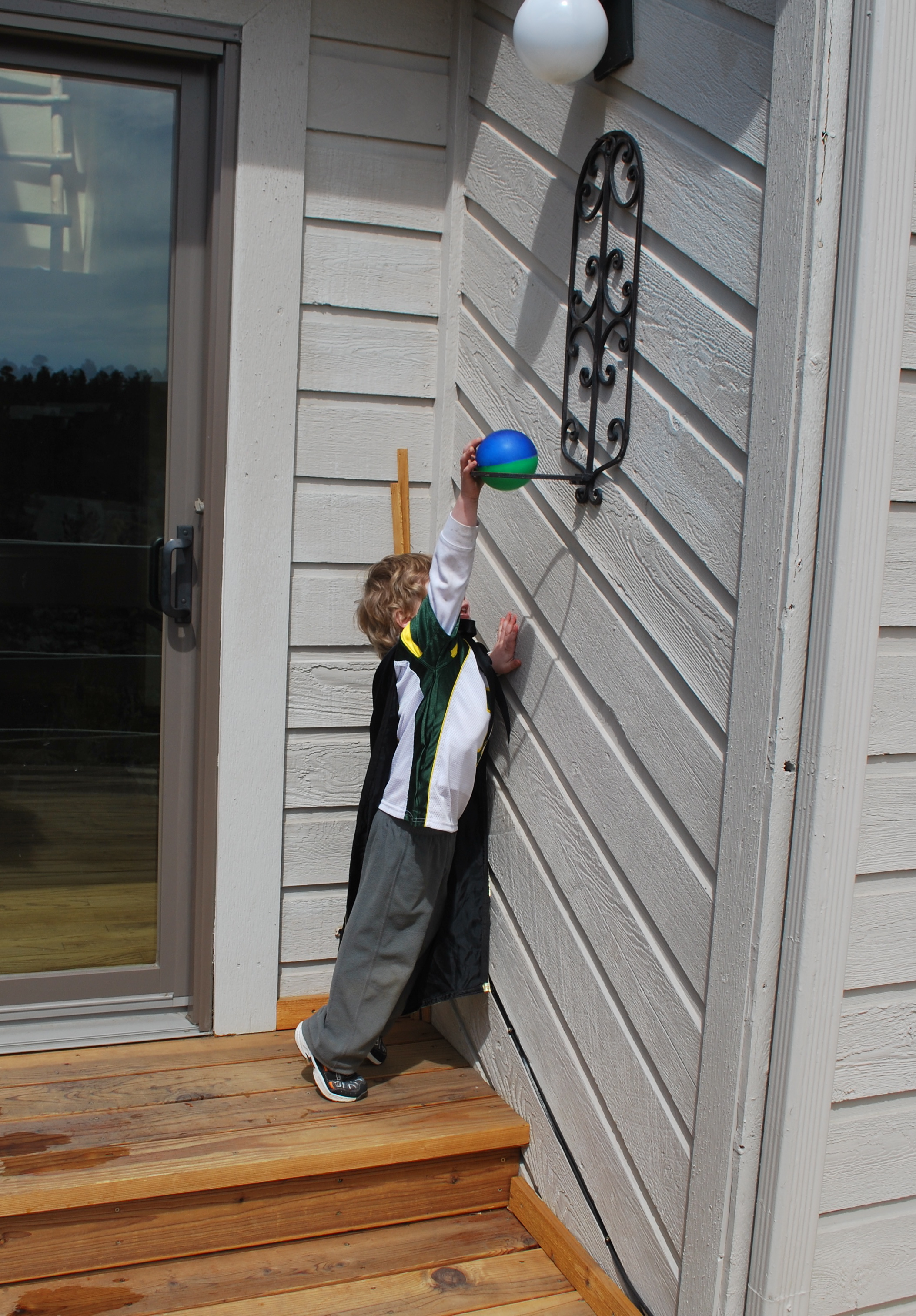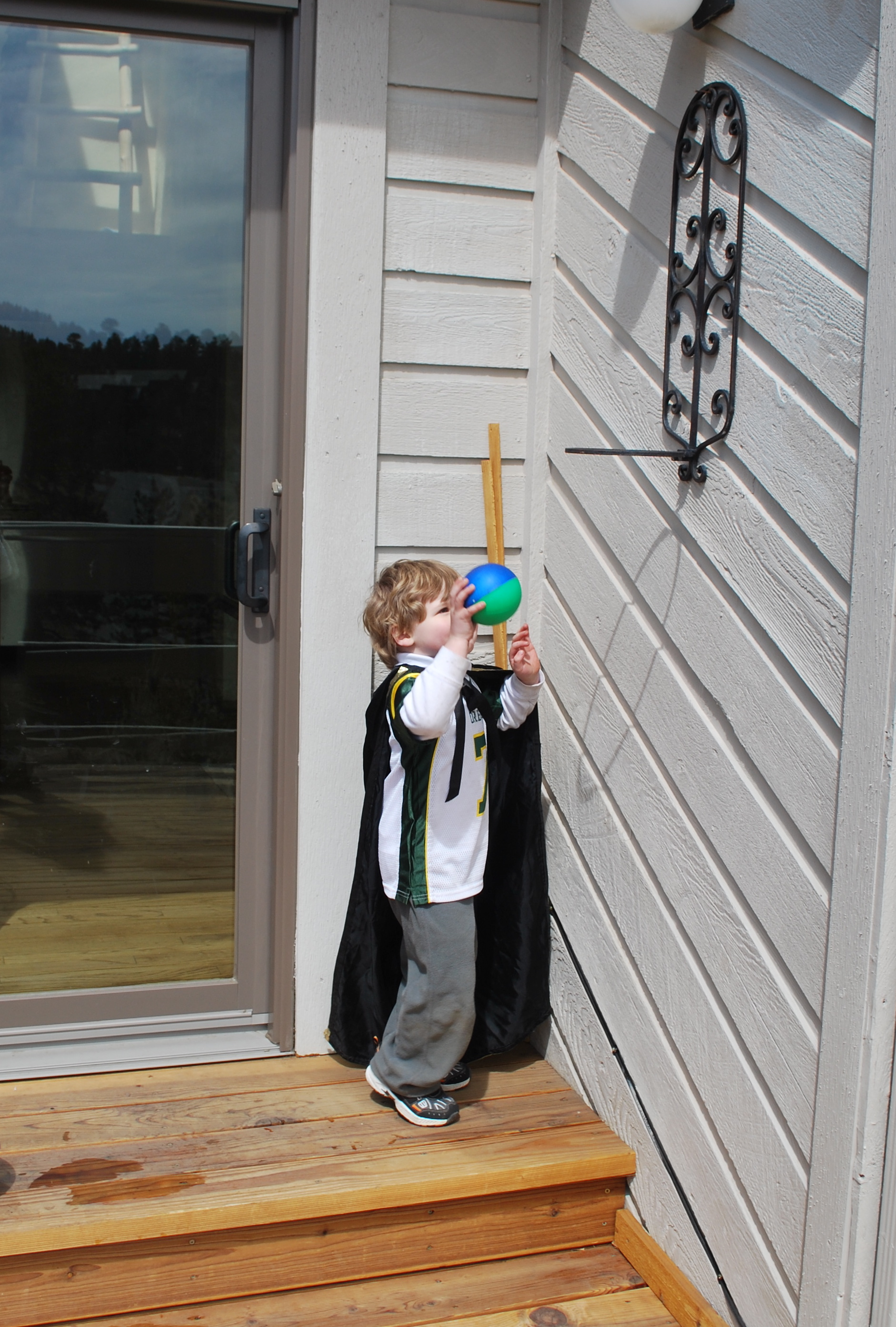 While baby girl took a nap the little guy made up games while playing outside on the decks.
