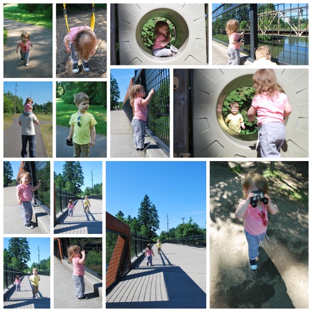 On the other side of the park where the balloon festival takes place there is a natural area and a pedestrian bridge over the Tualatin River. This is where Ryan runs and swims the dogs and where we sometime just go to throw rocks in the river and have a nice family outing.