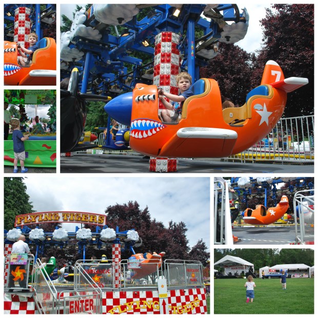 Later in the day the little guy, baby girl and I went back down to the park to the carnival to ride some rides and play some games!