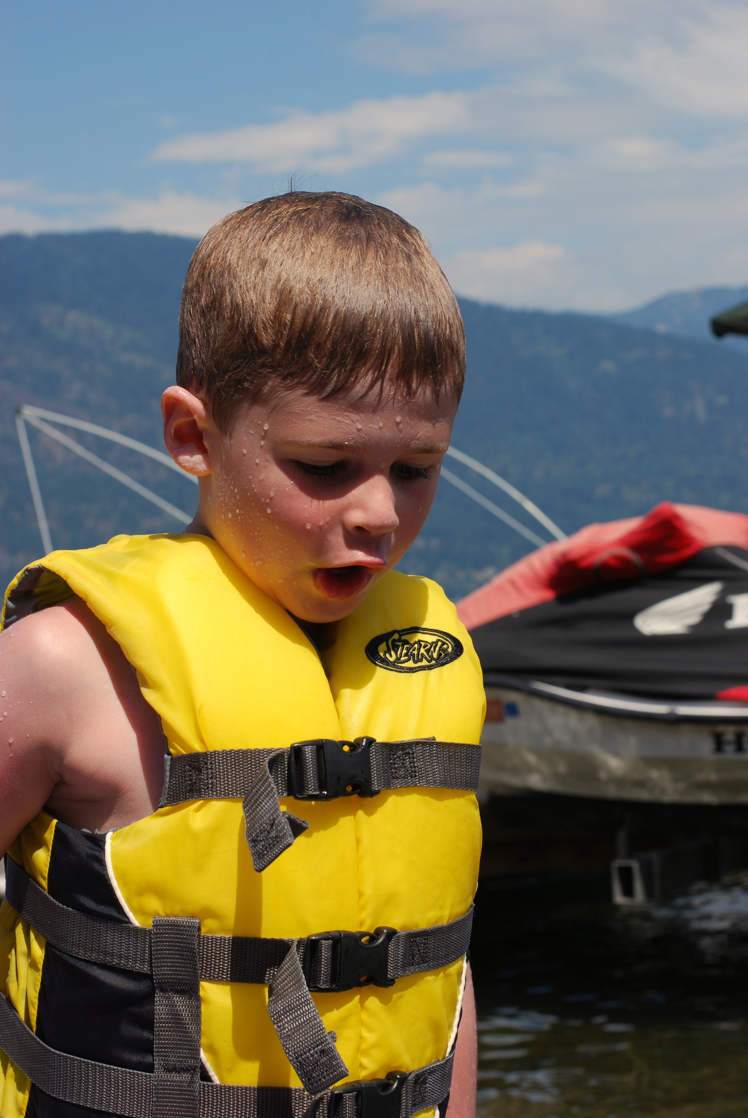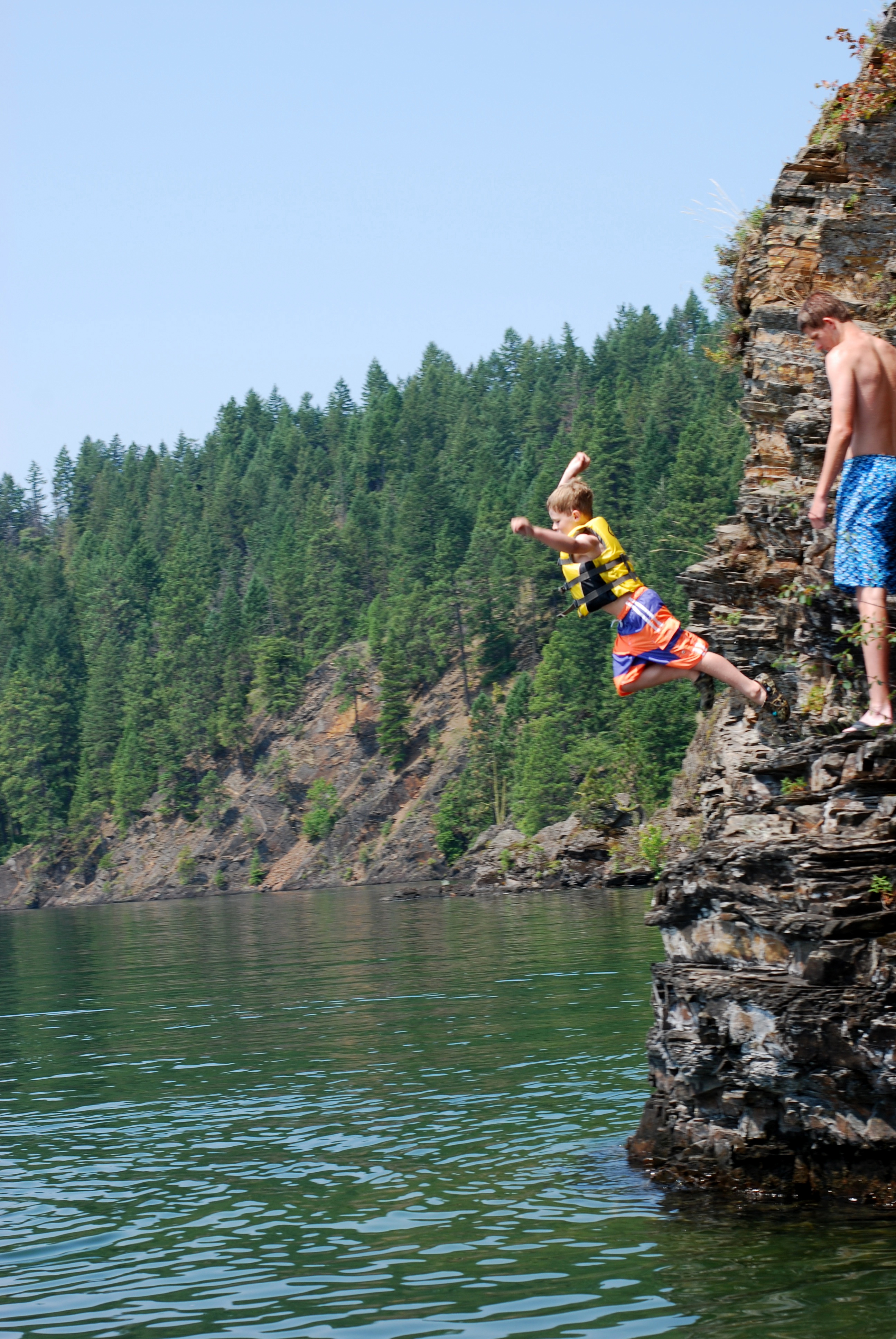 Such a happy family time.. BG happy in water, Big brother and dad fearless jumpers… mom recording it all behind the camera! Happpy for you all…. love that little perch!