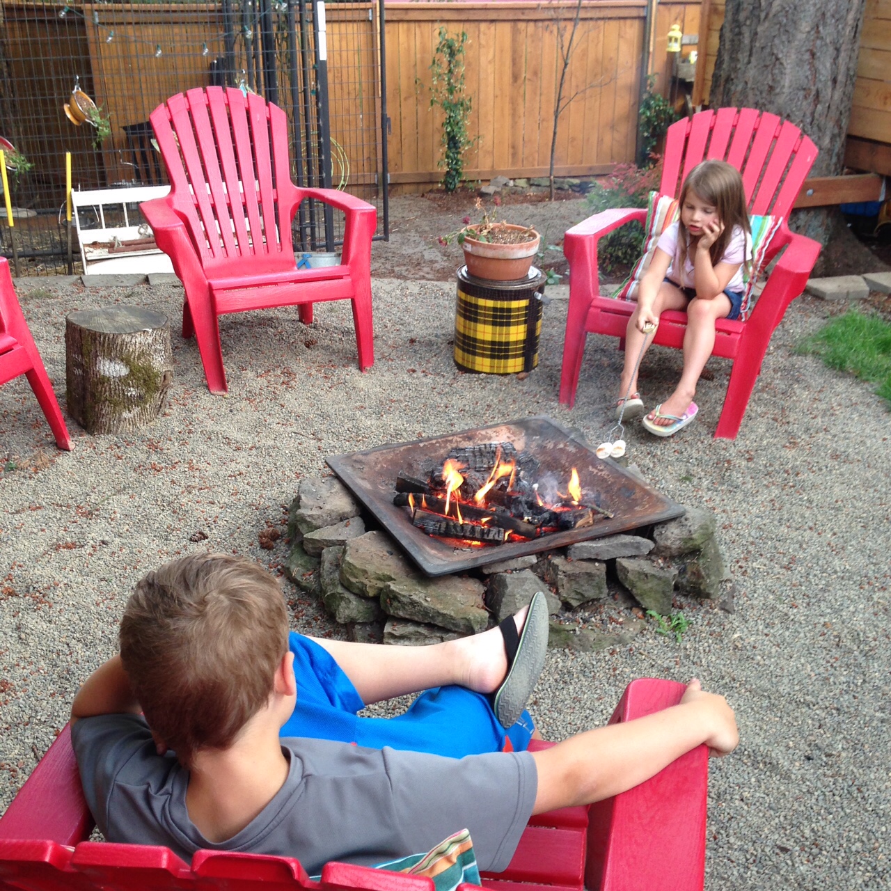 i asked ryan to build a fire for marshmallow roasting. the kids had a good time sitting around the fire.