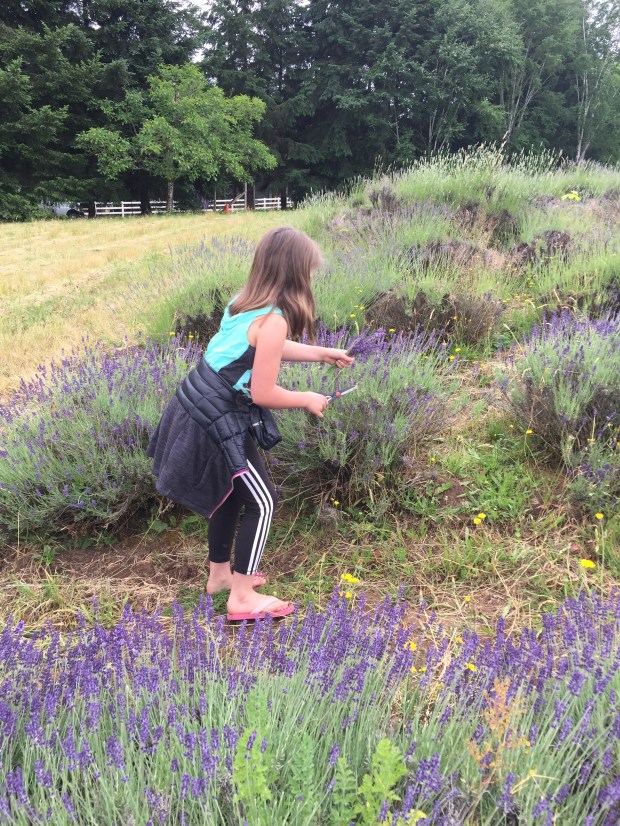 the english lavender is currently in bloom, so we each collected our own little bundle.