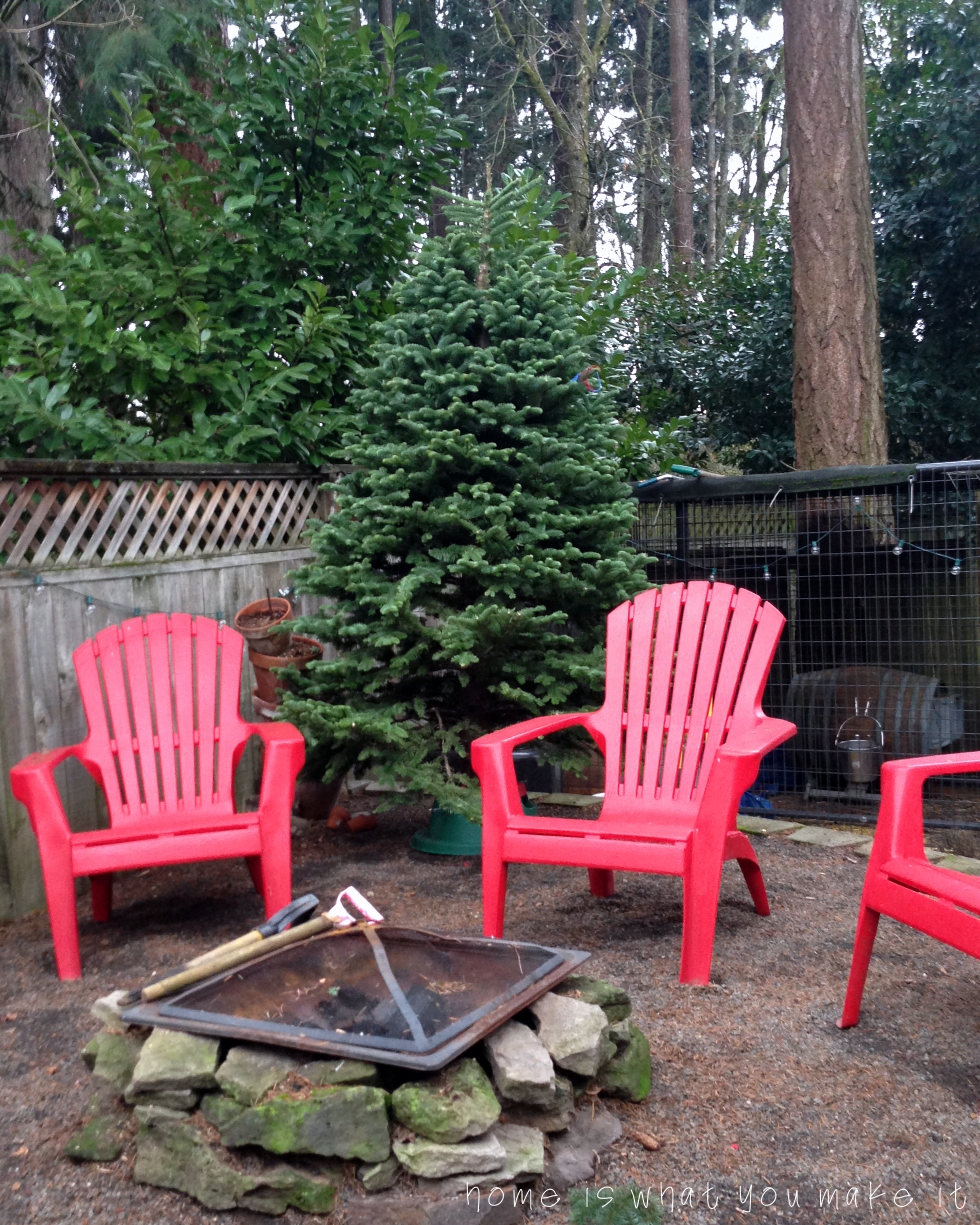i asked ryan to haul the tree around to the backyard so we can redecorate it.