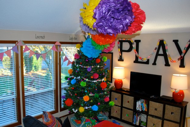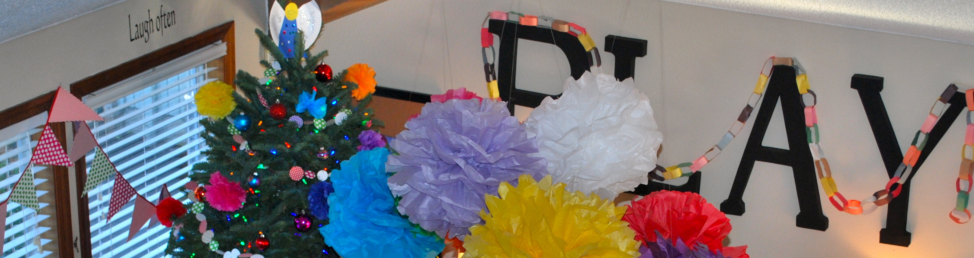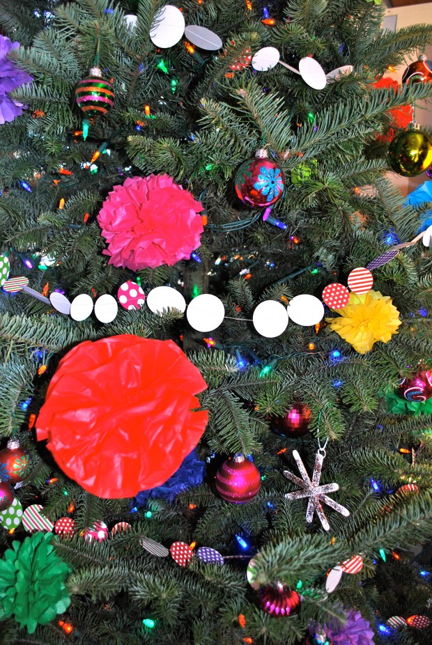 I love to sew paper garland…it was the first thing I sewed on my sewing machine. I also used paper straws and cupcake liners for one of the garlands!