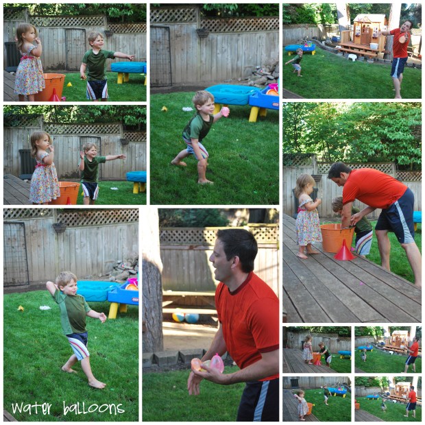 after  the little guy’s last day of school we went down the street, and the kids had a huge water balloon fight with some friends. myself and the mom hosting the party filled over 300 balloons! it took me at least an hour to fill two five gallon buckets with balloons…within a few minutes the balloons were gone!